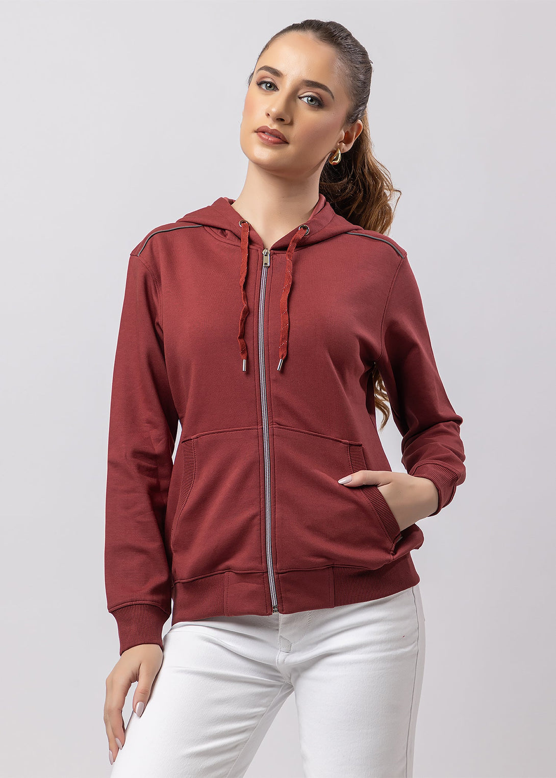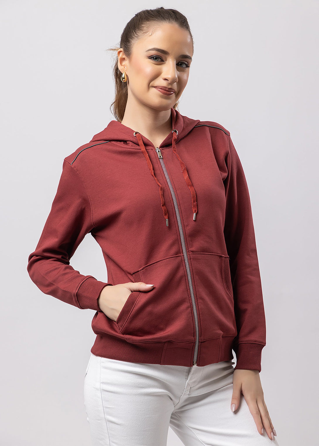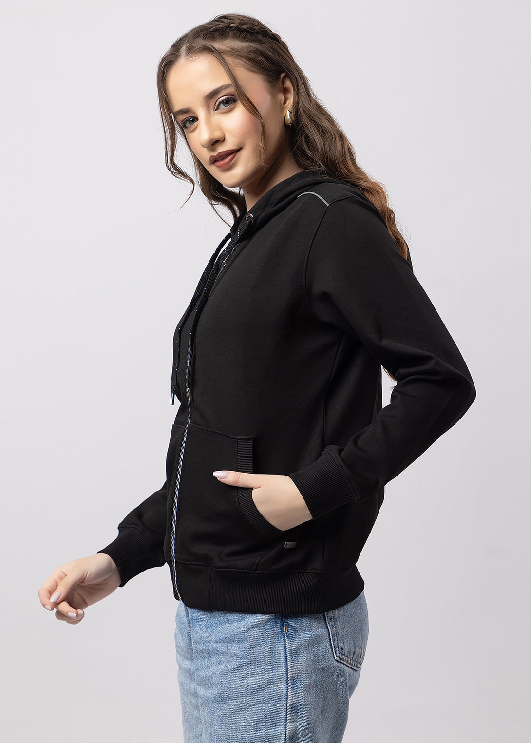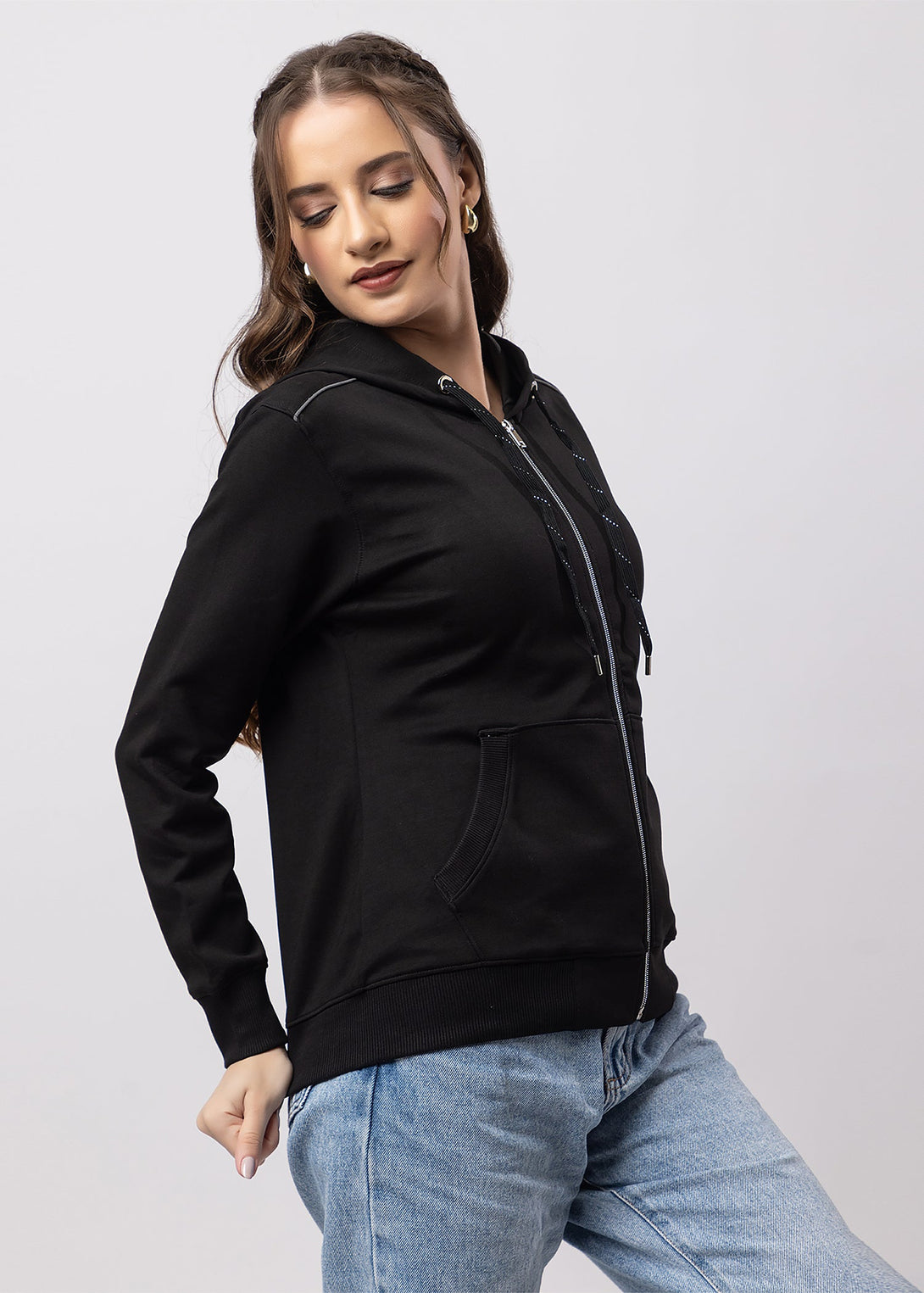Women's Solid Zipper Hoodie