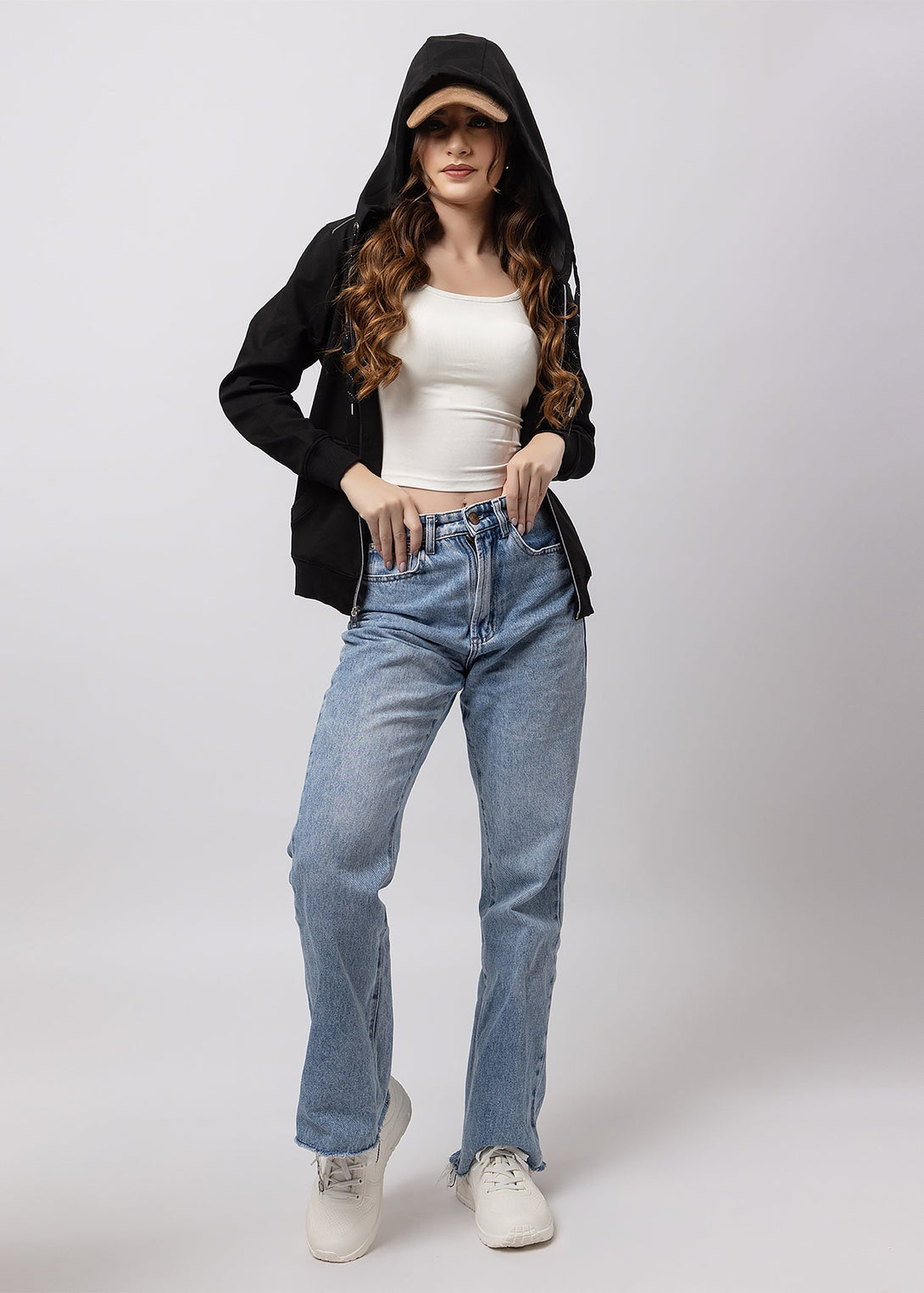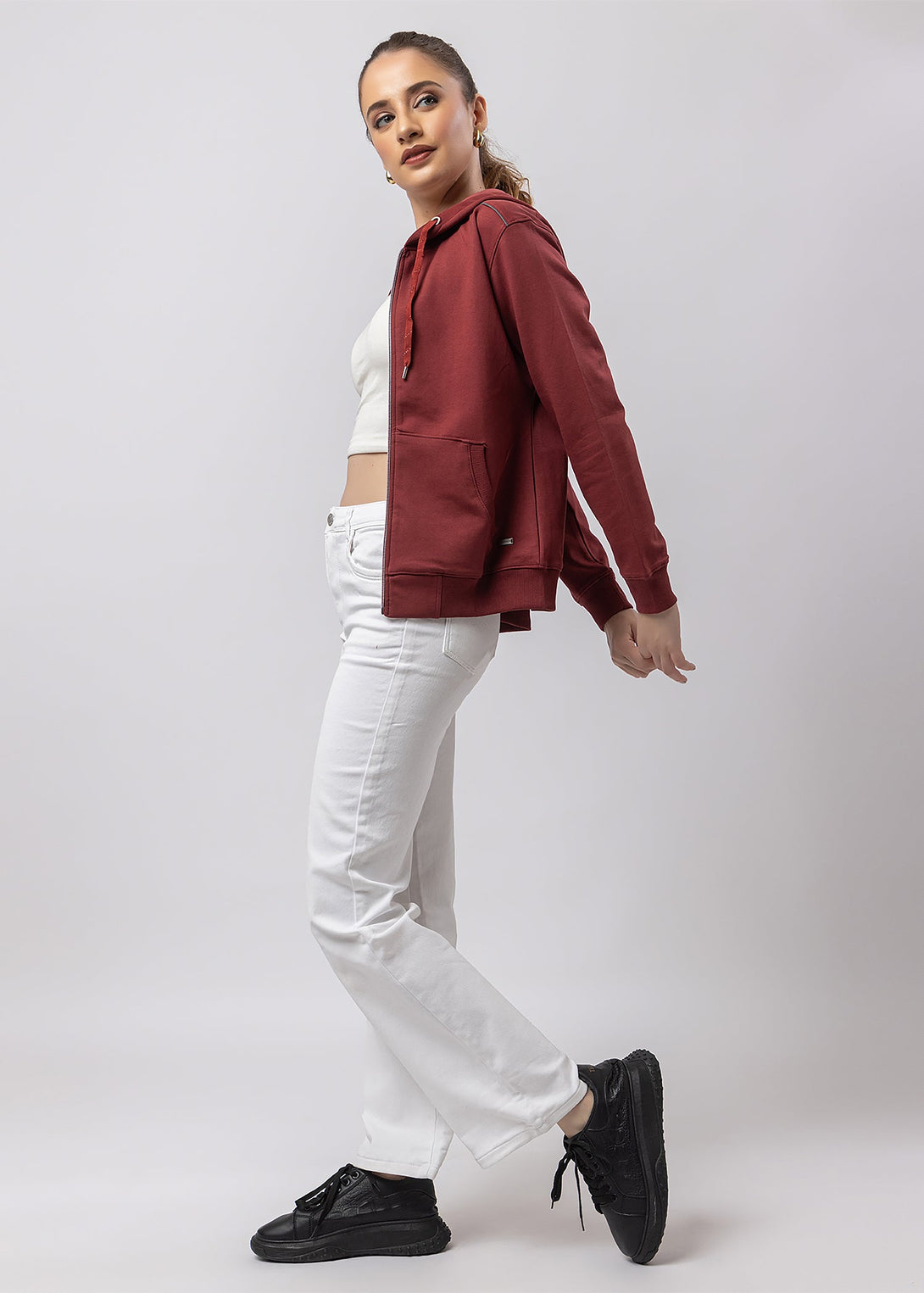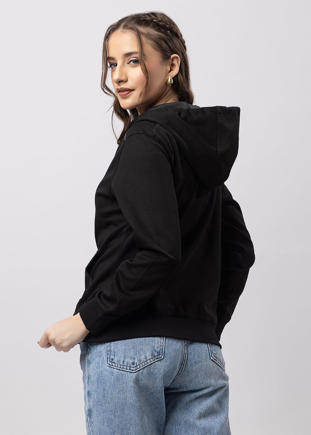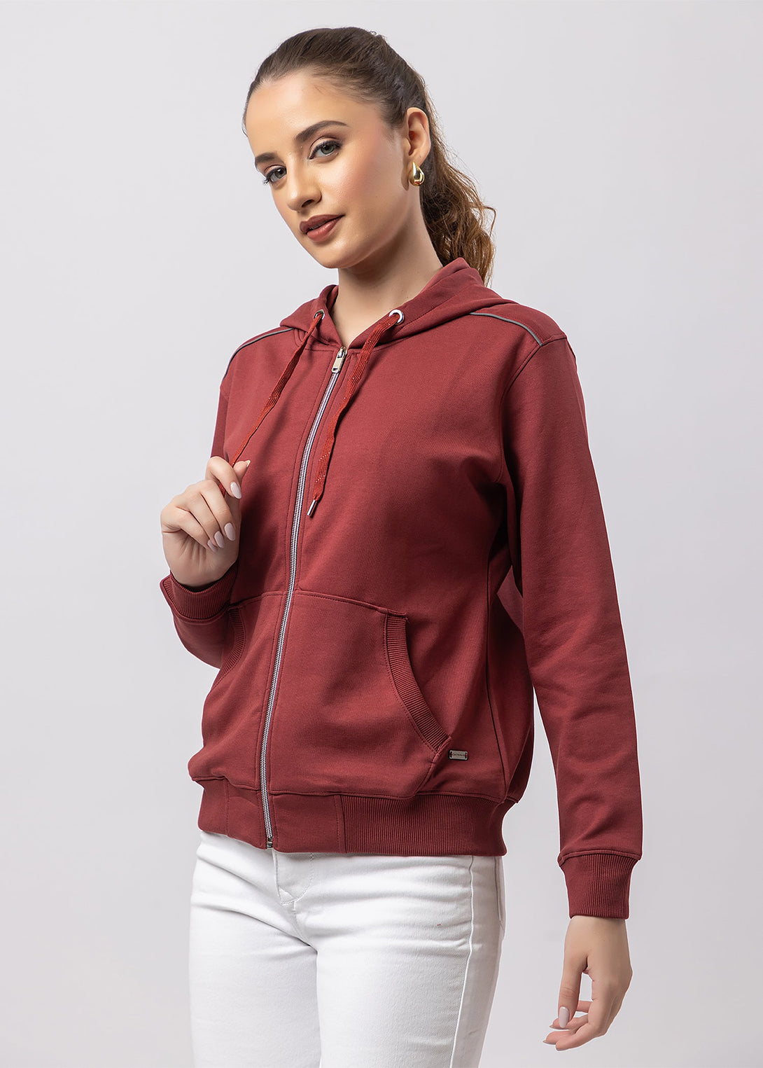 Women's Solid Zipper Hoodie